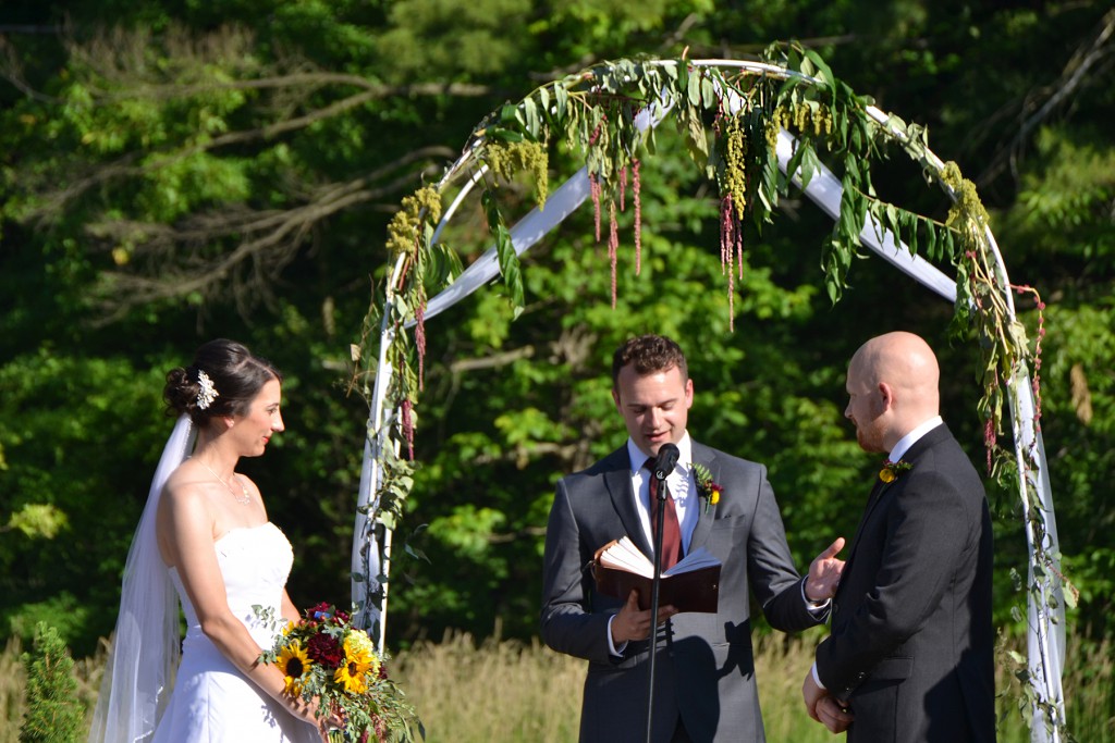 We were thrilled to host the wedding of Patrick’s son. David and his beautiful bride Angela! It was a spectacular event, perfect weather, and a walk through the woods to their ceremony! The couples two dogs preceded the bride! Dancing, Lawn Games, Food Stations and a Sparkler Send-off. We wish them years of love and happiness!